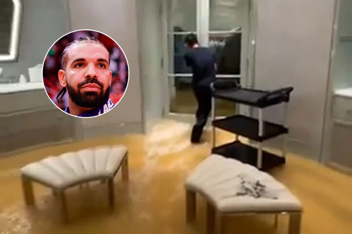 On Tuesday evening (July 16), Drake gave a closer look at the downsides of being a hip-hop homeowner as he filmed water raging through rooms in his 50,000-square-foot crib. In the video, which Drizzy shared on his Instagram Story, he caught the moment on camera while standing across from another man attempting to keep the flooding brown water out of a wardrobe room. The space the rapper seemed to be filming in was a seating area equipped with mirrors and a sink.