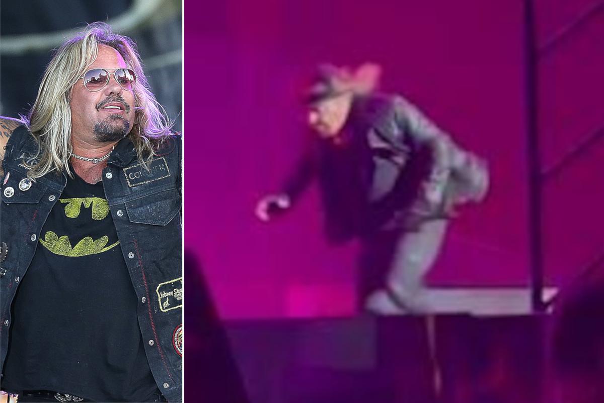 Motley Crue frontman Vince Neil took a serious looking fall during the band’s performance in Atlantic City on Friday night (May 3).